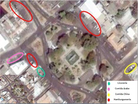 En ésta Investigación se analiza los ritos de comensalidad en espacios públicos de la zona norte de Maracaibo, específicamente en los alrededores de una de las más representativas plazas. Dicha plaza es conocida con el nombre de Indio Mara, fue inaugurada el 22 de agosto de 1949. En sus alrededores, se pueden encontrar diversos establecimientos de comidas especializadas, así tenemos; los restaurantes chinos, árabes y criollos, areperas, hamburgueserías y licorerías, entre otros (ver figura 1). Debido al fenómeno de la macdolinzación de las últimas décadas, nos referiremos en este estudio a las hamburgueserías, entre otras cosas, por ser los más abundantes y preferidos por los comensales marabinos. Se describirá y caracterizará según las siguientes categorías; niveles espaciales, códigos culinarios, actores rituales, temporalidad alimentaria.