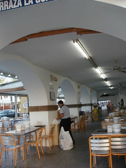 Ilustración 16. Los portales de la afamada marisquería Romerijo®son la mejor manifestación de la total ‘conversión del lugar a través del espacio turístico’: ningún portuense se sienta en esas mesas a menos que desempeñe su papel de anfitrión con alguna visita amiga.
