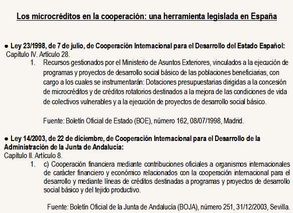 De ahí a considerar los programas de microcréditos, únicamente, como una extensión o una verbigracia, con nuevos matices y epítetos, de las vicisitudes de los mecanismos de la económica internacional contemporánea, sólo hay un paso. No daremos el paso hacia parecida argumentación de índole grandilocuente, porque sería bastante obtuso en el análisis cargarlo todo implícitamente sobre las espaldas de los indubitables apuros del sistema económico mundial actual y, consecuentemente, limitarían la responsabilidad de los protagonistas de la cooperación al desarrollo nominalmente especializados en la materia y a este fin.