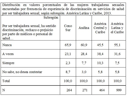 2013 Estudio sobre estigma y discriminación en los servicios de salud a las mujeres trabajadoras sexuales en América Latina y el Caribe – Informe Regional 2013.
