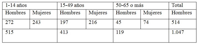 De acuerdo al gráfico anterior, predomina la población entre 1 y 14 años; seguidamente se halla la población económicamente activa, comprendida entre los 15 y 49 años (en este rango de edad hay un predominio de mujeres); por último, encontramos a la población mayor que suma un número también considerable. De este cuadro se desprende que el recambio generacional en “mano de obra” está garantizado. Sin embargo, ese futuro es incierto frente a la falta de tierra, escasa productividad agrícola y la desvalorización de sus mismas prácticas.