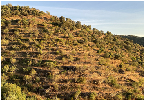 Si hay una técnica que se identifica con la piedra en seco es la de construcción de muros. Estos podemos encontrarlos en construcciones ganaderas, como corrales o tenadas, por todo el occidente de Castilla y León. Aunque se pueden conseguir buenos alzados con esta técnica, lo habitual es que los muros de piedra seca no superen los dos metros. A las limitaciones técnicas se suman las funcionales, por ejemplo, cuando la estructura en seco está destinada a sustentar o contener grandes fuerzas, algo que ocurre en las presas y pesqueras y, en menor medida, en los bancales. Este último es el caso de los Arribes, espacio geográfico y cultural que comparten las provincias de Zamora y Salamanca con Portugal. Aunque encontramos paisajes abancalados en otras comarcas salmantinas como la Sierra de Francia, no hay nada comparable a los Arribes; de hecho, este paisaje abancalado fue un elemento clave para que el Alto Douro Vinateiro fuera incluido en la Lista del Patrimonio Mundial por la UNESCO (https://whc.unesco.org/en/list/1046; véase Martínez Arnáiz y otros 2019). En ambos casos, los muros están delimitando el espacio de una forma antinatural: mientras la presa modifica el cauce de un río, el bancal sujeta el terreno y lo hace productivo al aumentar la superficie cultivable, mejorar el drenaje y evitar la erosión natural.