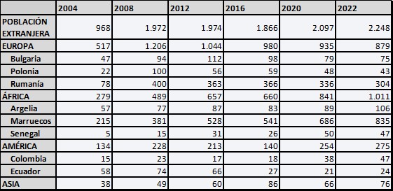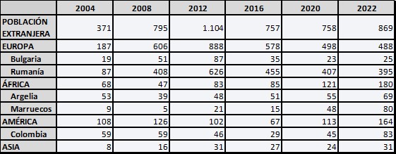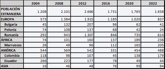 Tabla 2. Evolución de las principales nacionalidades en Requena. 2004-2022.